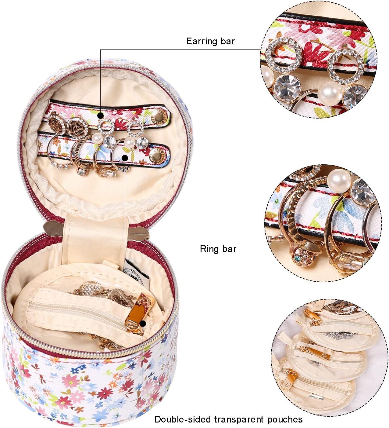imageAngelinas Palace Round Jewelry Organizer Case Travel Bag Bridesmaid Gifts Vegan Leather Box for Necklace Earring Bracelet Ringsoft pinkBlossom wine