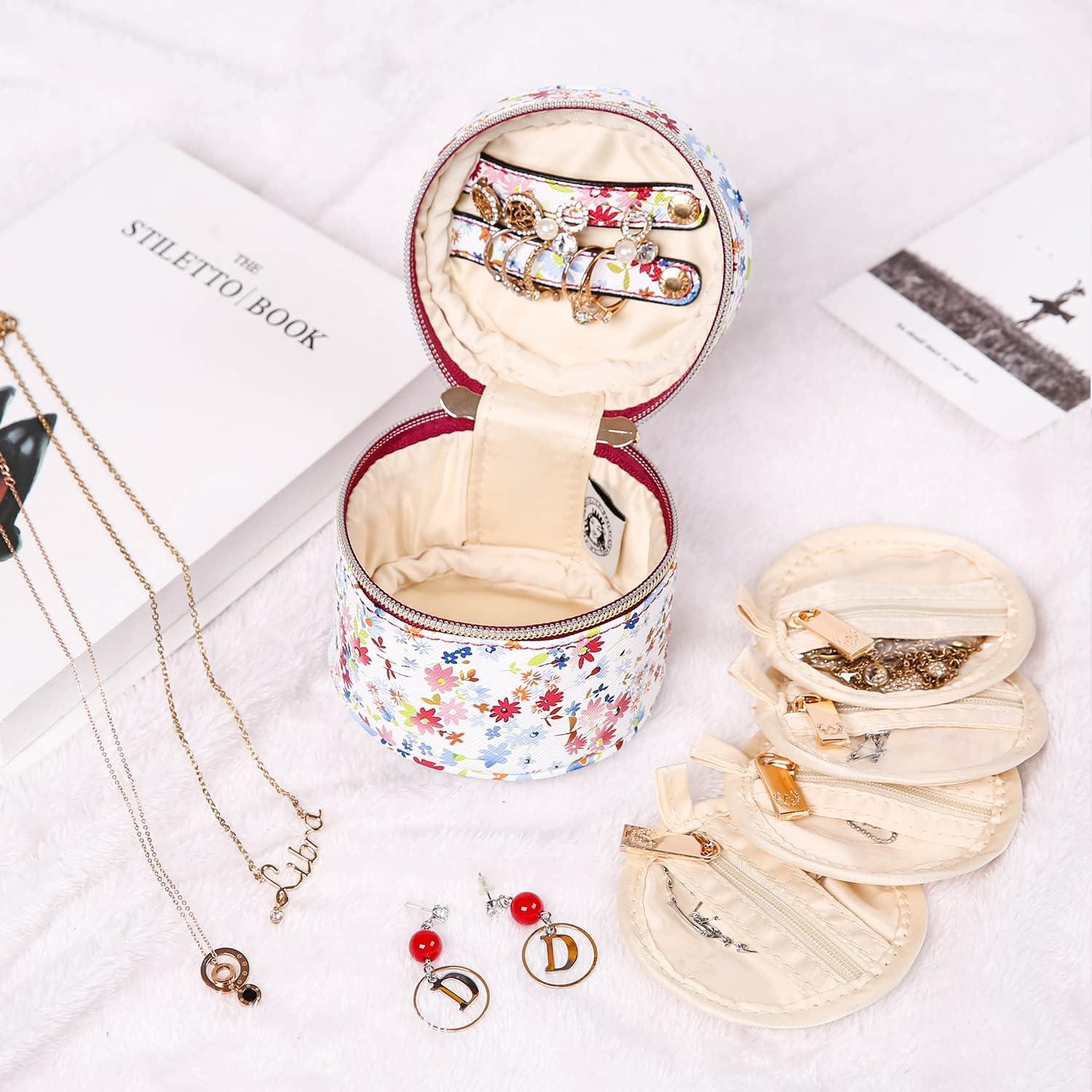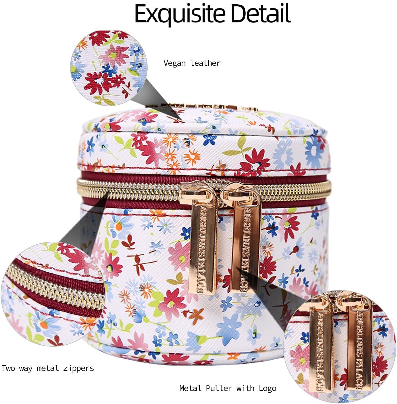 Angelina’s Palace Round Jewelry Organizer Case Travel Bag Bridesmaid Gifts Vegan Leather Box for Necklace Earring Bracelet Ring(soft pink)(Blossom pink)