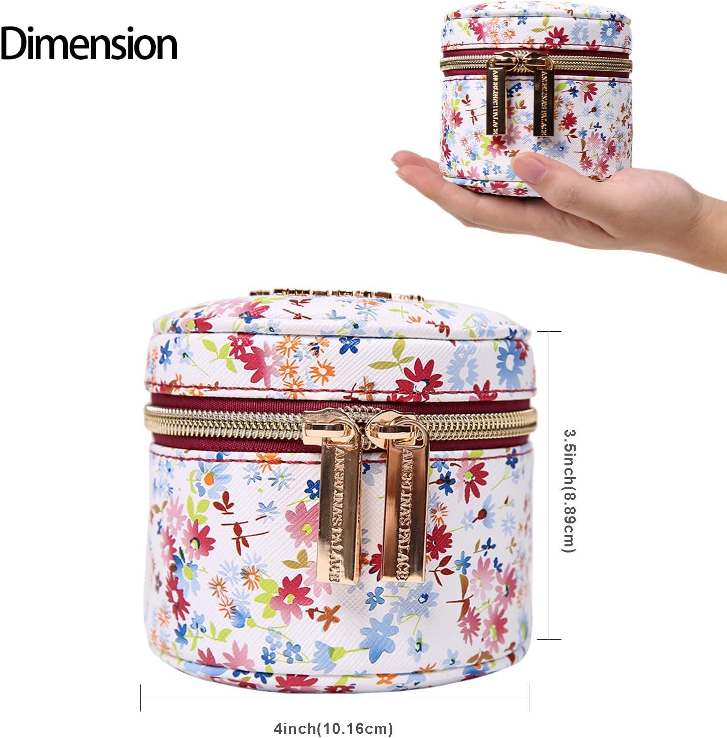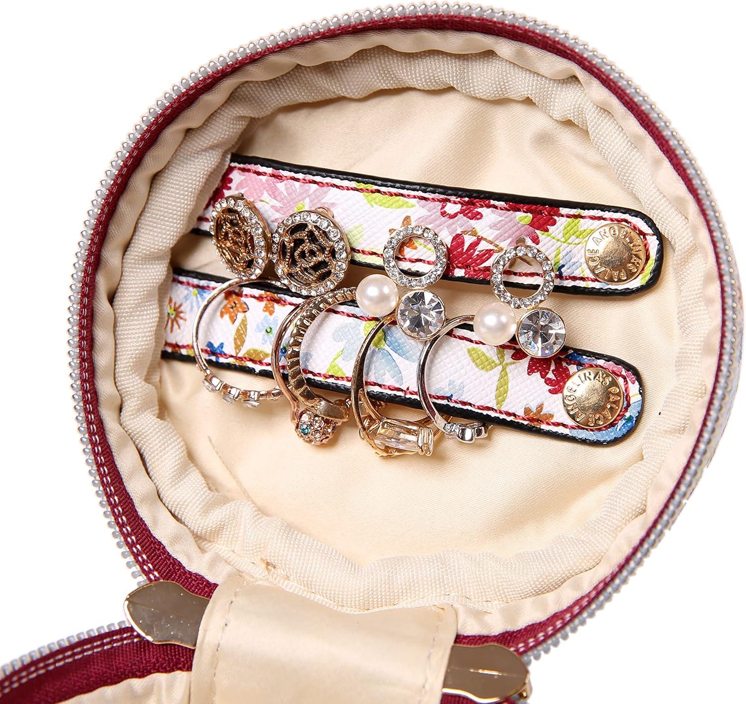 Angelina's Palace Round Jewelry Organizer Case Travel Bag Bridesmaid Gifts Vegan Leather Box for Necklace Earring Bracelet Ring(soft pink)(Blossom wine)