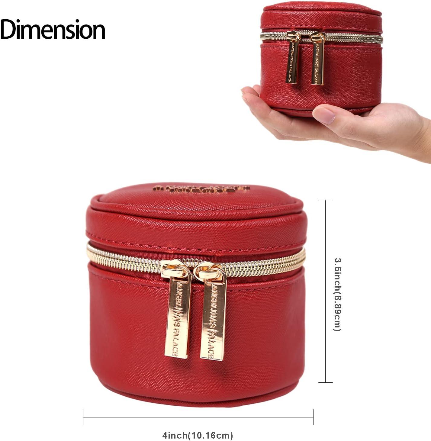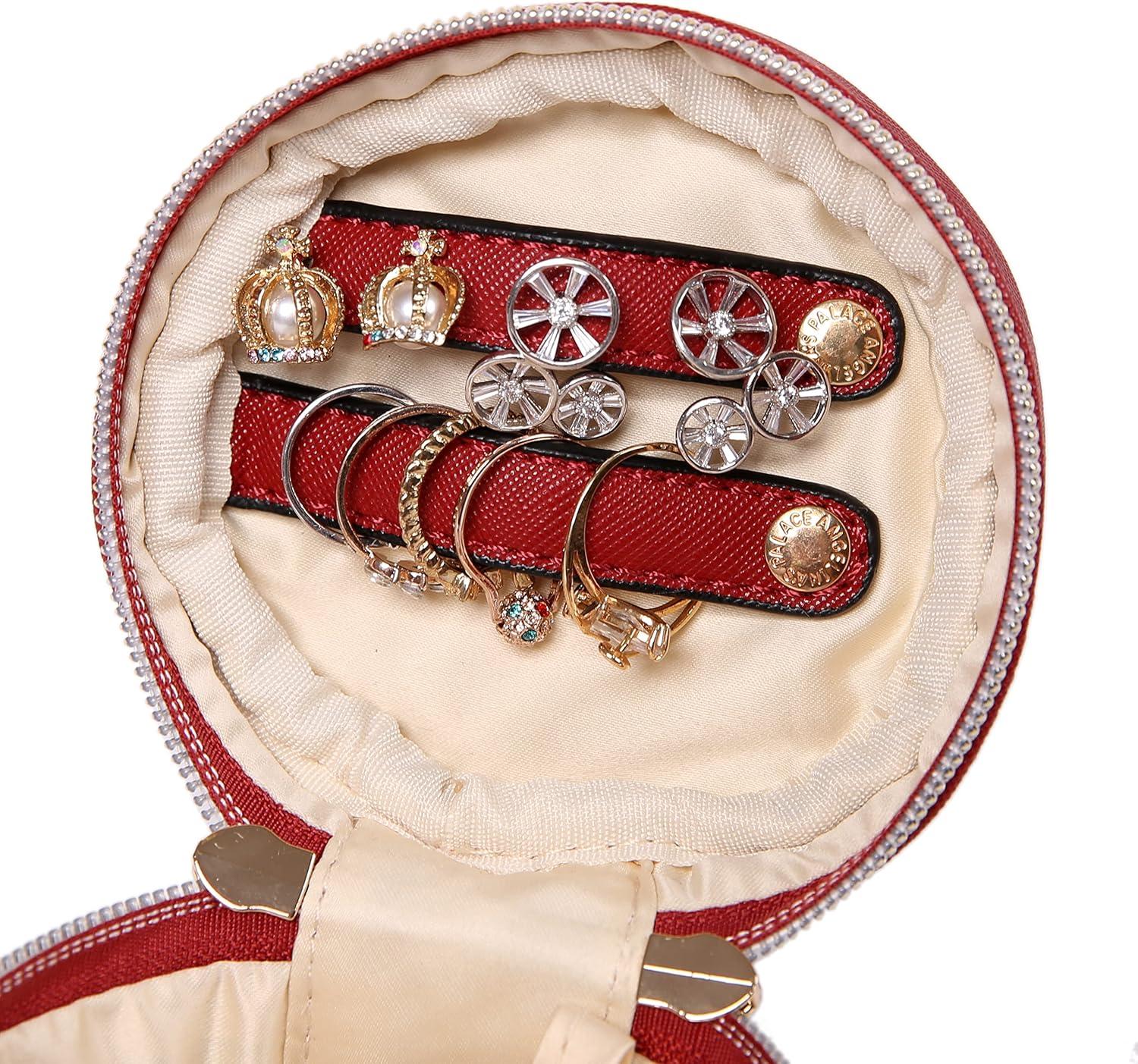 Angelina's Palace Round Jewelry Organizer Case Travel Bag Bridesmaid Gifts Vegan Leather Box for Necklace Earring Bracelet Ring(soft pink)(Brandy)