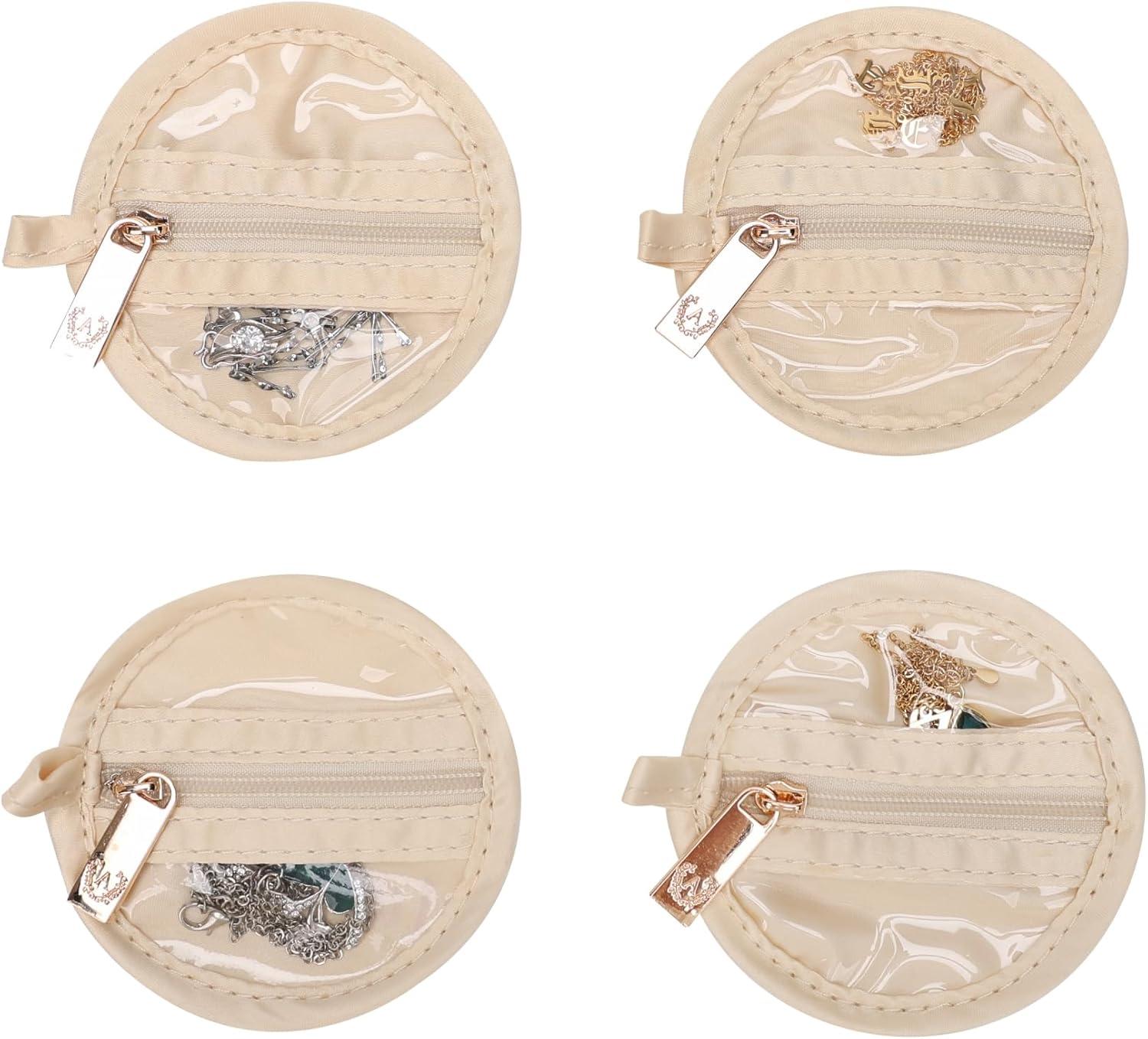 MADE TO LAST–This round jewelry organizer comes in classic and top-grade vegan leather surface and silk satin lining, even the double sided pouches are made in same plain satin which is is lightweight yet durable.