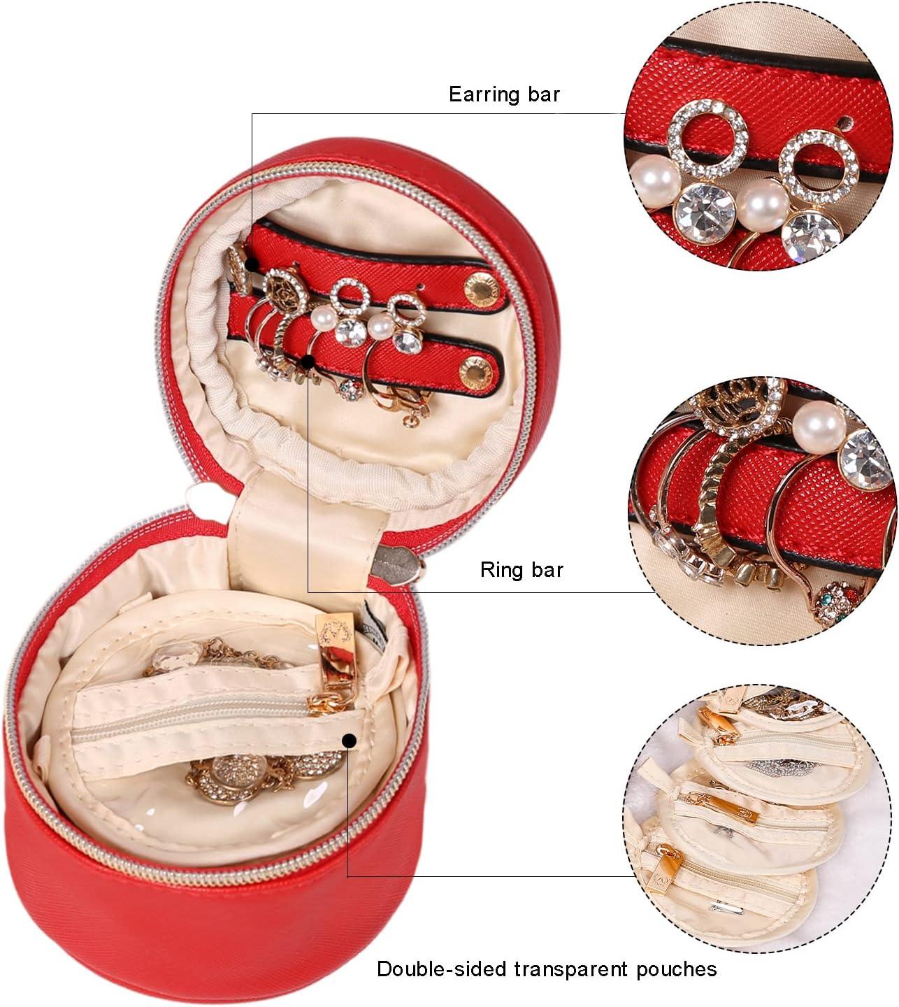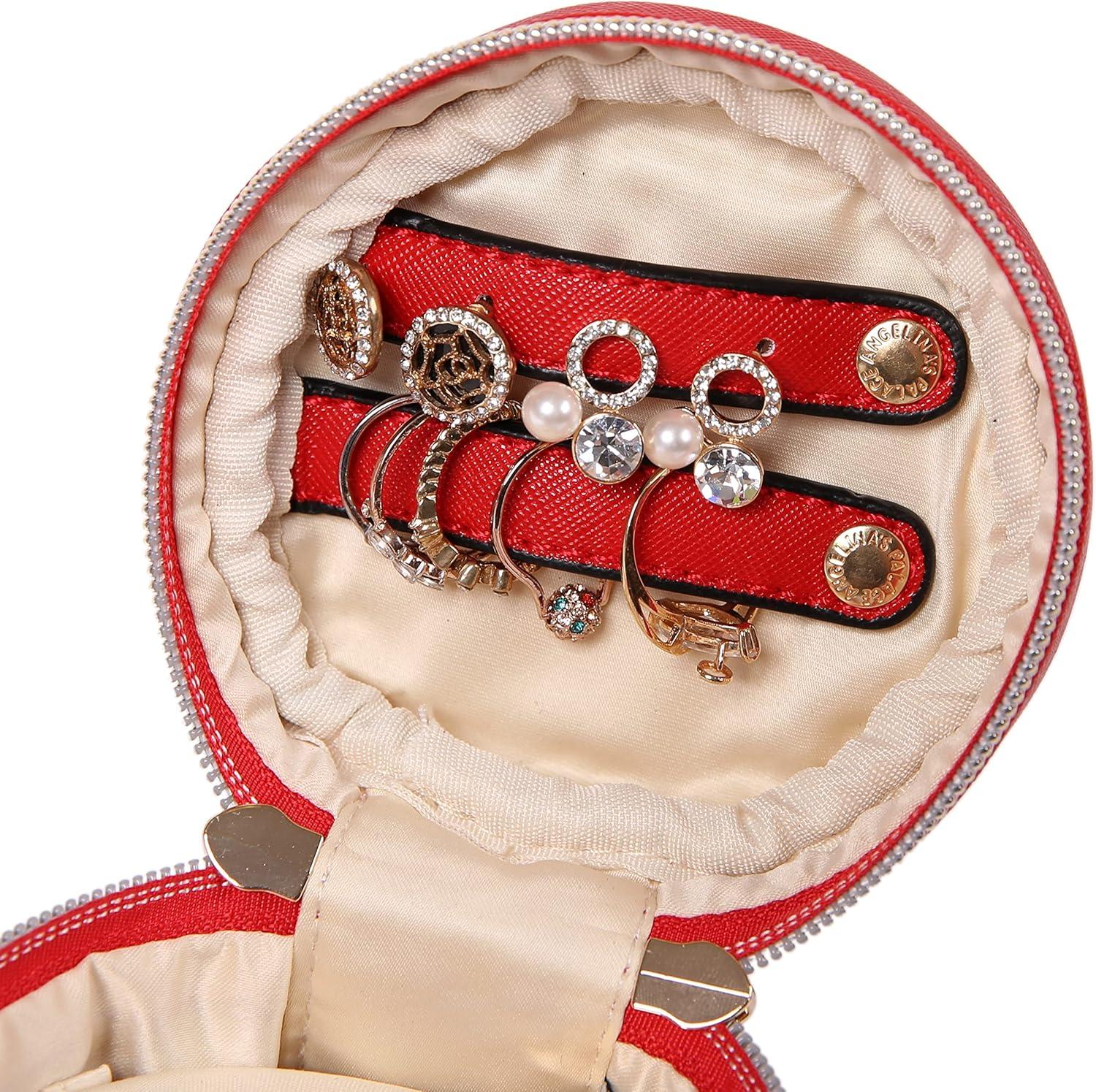 Angelina's Palace Round Jewelry Organizer Case Travel Bag Bridesmaid Gifts Vegan Leather Box for Necklace Earring Bracelet Ring(soft pink)(Light red)