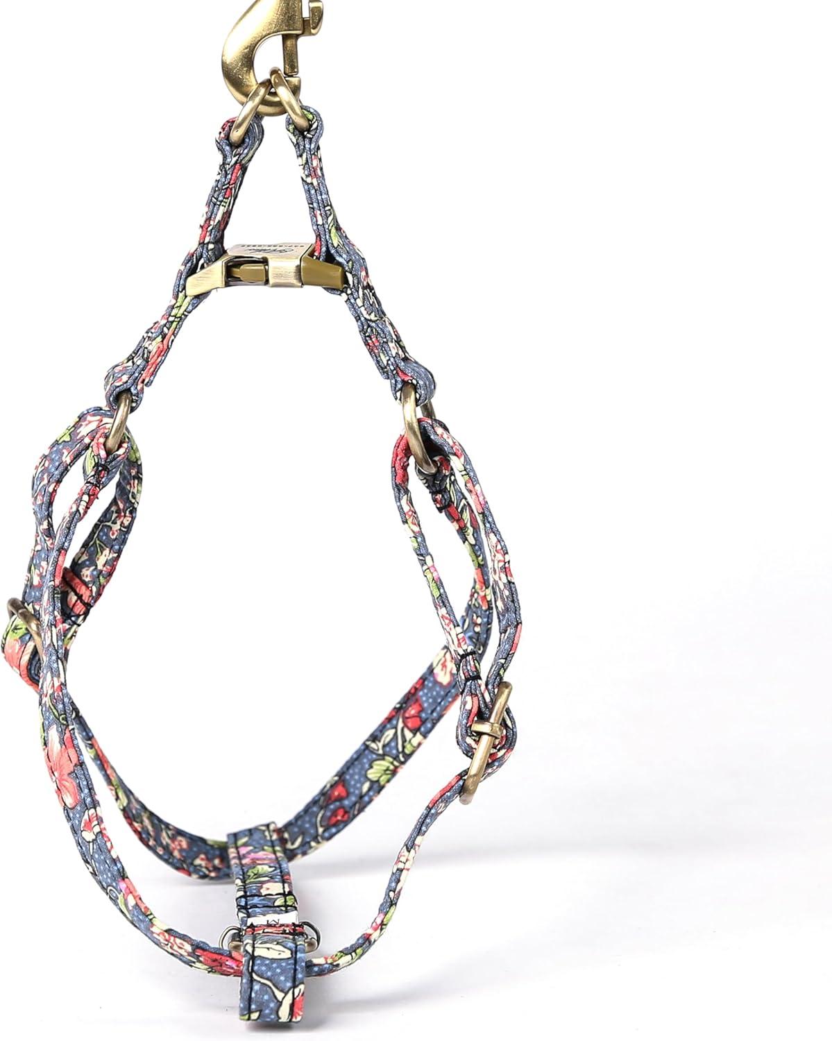 Angie and Allie Organic Cotton Personalized Step in Dog Harness,Custom Dog Halter Vests,Adjustable No Pull Canine Halter Harness for Small Medium Large Dogs(Bouquet Blue)