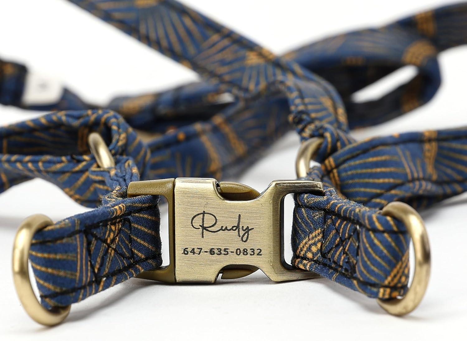 Customizable engraving: Personalize your dog's harness with engraved details on the brass buckle, be it their name, your contact information, or any text of your choice, ensuring they're always identifiable and safe.