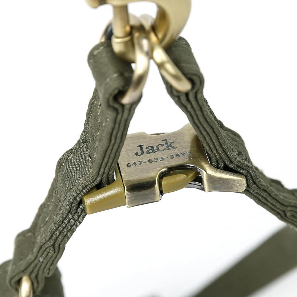 Customizable engraving: Personalize your dog's harness with engraved details on the brass buckle, be it their name, your contact information, or any text of your choice, ensuring they're always identifiable and safe.