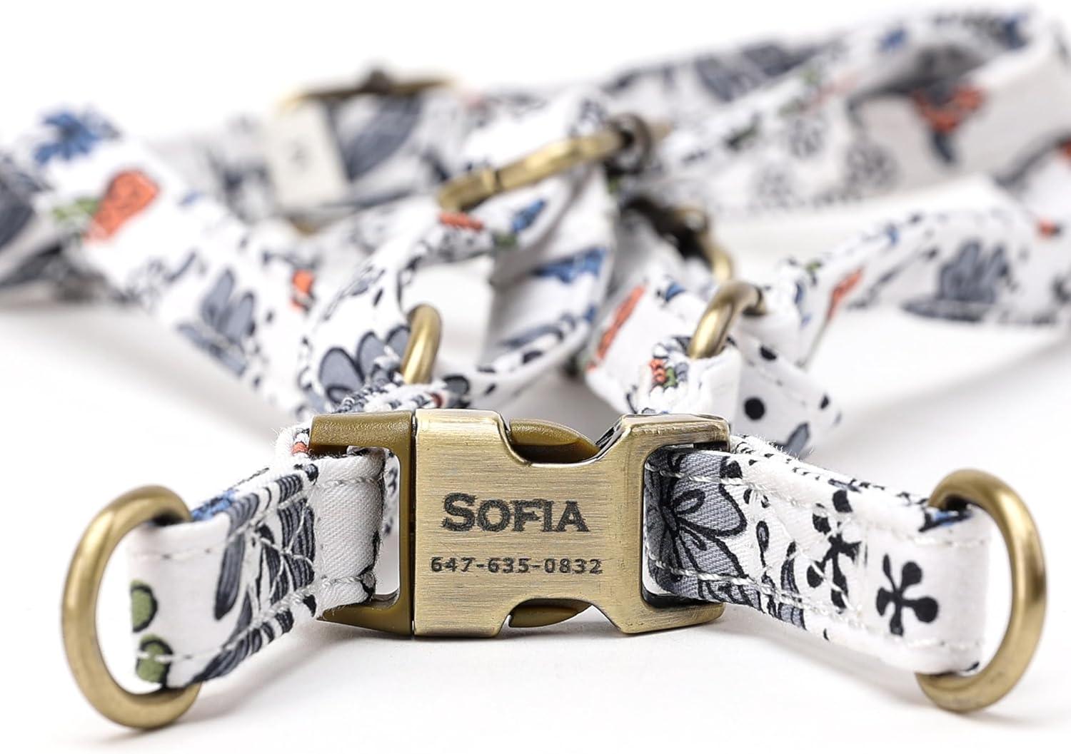 Customizable engraving: Personalize your dog's harness with engraved details on the brass buckle, be it their name, your contact information, or any text of your choice, ensuring they're always identifiable and safe.