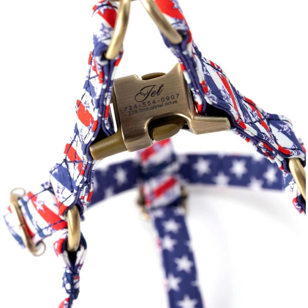 imageAngie and Allie Organic Cotton Personalized Step in Dog HarnessCustom Dog Halter VestsAdjustable No Pull Canine Halter Harness for Small Medium Large DogsStars and Stripes