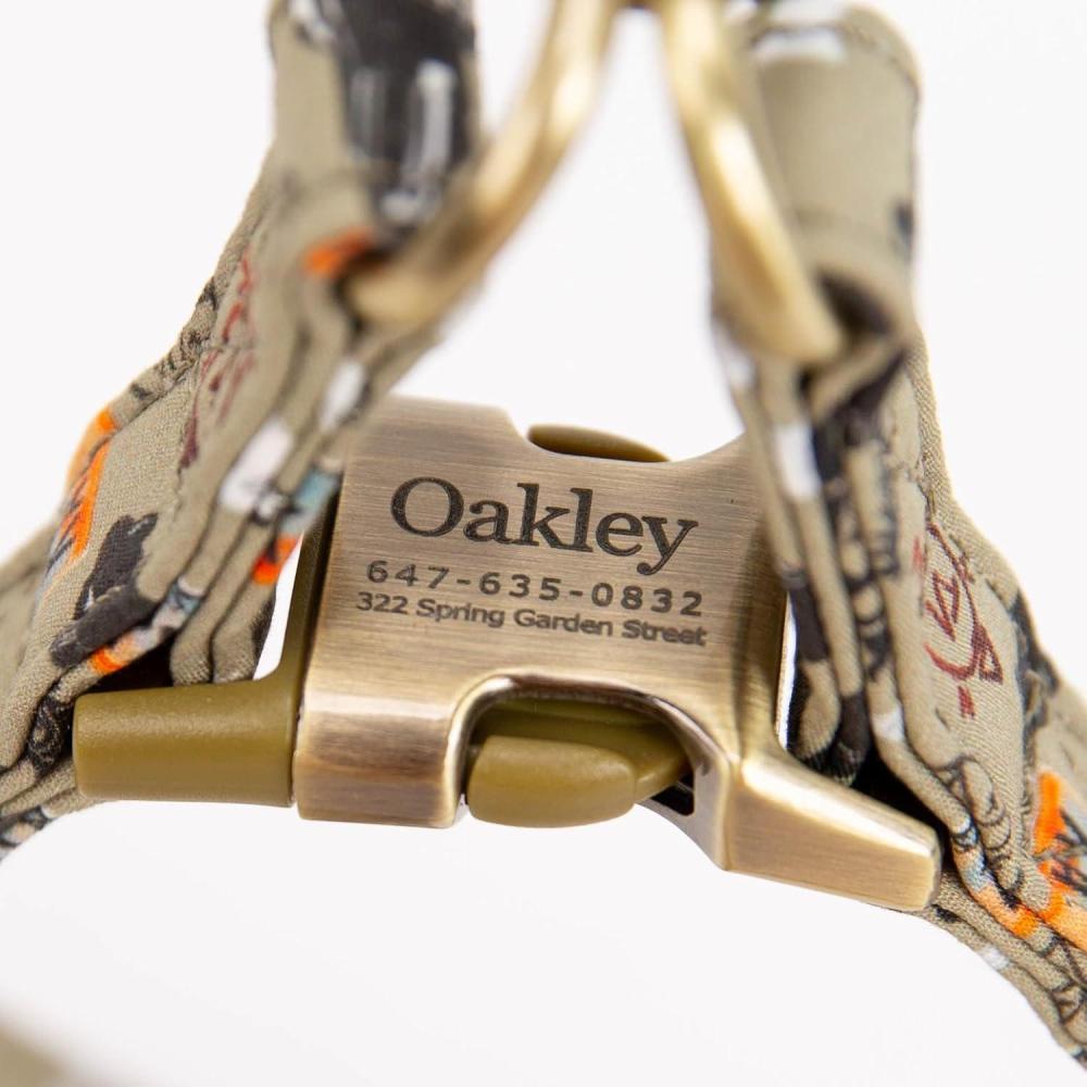Customizable engraving: Personalize your dog's harness with engraved details on the brass buckle, be it their name, your contact information, or any text of your choice, ensuring they're always identifiable and safe.