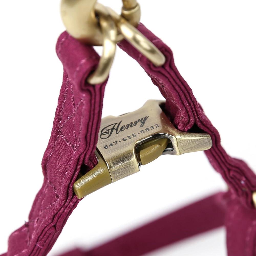 Customizable engraving: Personalize your dog's harness with engraved details on the brass buckle, be it their name, your contact information, or any text of your choice, ensuring they're always identifiable and safe.